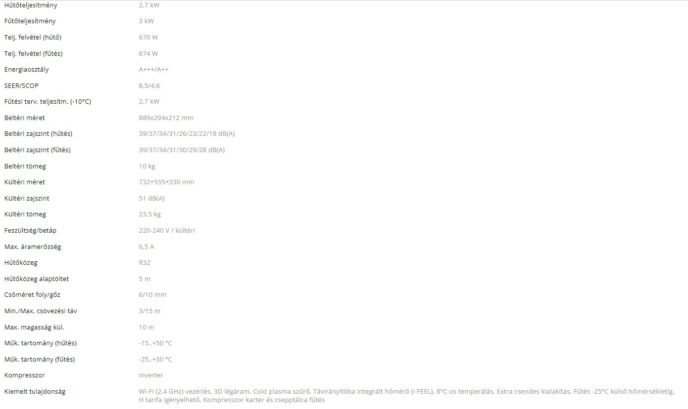 Felszerelés és beüzemelés díja bruttó 55.000 Ft, mely tartalmazza a kiszállást, a készülék helyszínre szállítását, a kültéri és beltéri egység felszerelését, elektromos betáp kiépítését aljzatba max. 5 méterig*, a kültéri tartókonzolt, rögzítő elemeket, a vákuumozást, a berendezés beüzemelését és azzal kapcsolatos dokumentumok kitöltését (pl.: beüzemelési jegyzőkönyv, garanciajegy...), valamint a takarítást.