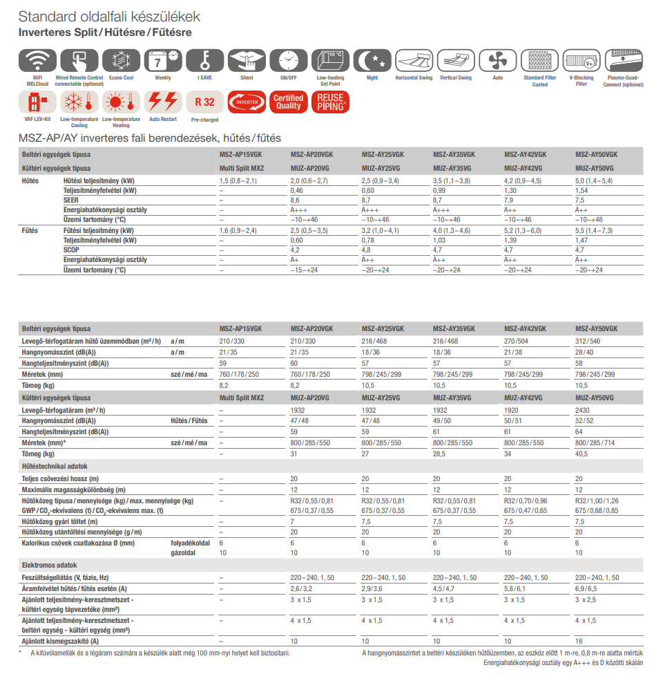 mely tartalmazza a kiszállást, a szereléshez szükséges anyagköltséget 3 méteres csőszakaszig (vegytiszta hűtőközeg csövek, szigetelés, kábelek, kondenzvíz cső), a munkadíjat 1 db faláttörésre. (Növelheti a költségeket a keményebb, vagy átlagosnál szélesebb falszerkezet!)
